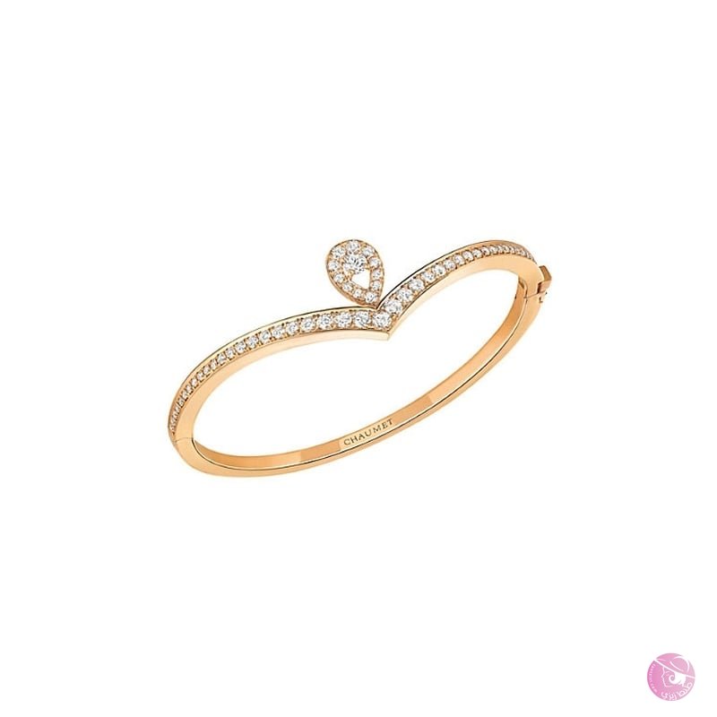 سوار آخر بالذهب الأبيض من شوميه Chaumet، ويتوفر بألوان الذهب الأخرى أيضاً، يتميز بتصميمه المميز والذي يبدو رائعاً حول المعصم.