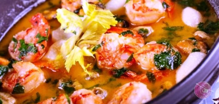 2. تُخلط الكزبرة و عصير الليمون والملح ومزيج التوابل في زبدية متوسطة الحجم. ثم يضاف الجمبري. ويُغطى الطبق و يُترك في الثلاجة لمدة 30 دقيقة.