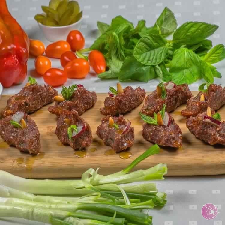 5. ضعي أٌقراص الكبّة النيّة في طبق التقديم وزيّنيها بأوراق النعناع الأخضر.