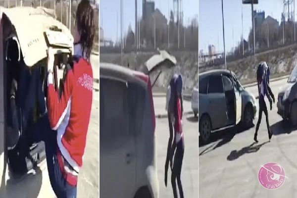 وغادرت الشابة سيارتها منفعلة، وسحبت سائق سيارة أخرى من داخل مركبته، ثم وضعته فوق كتفها، وألقته بعد ذلك في صندوق سيارتها.