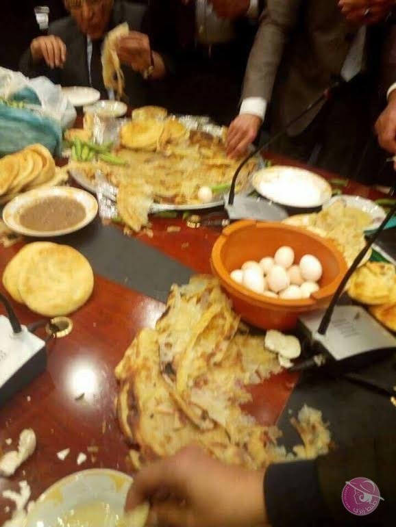 وعقب الانتهاء من الاجتماع، نشر النواب الفطير على مائدة المناقشات داخل القاعة المخصصة للجنة الزراعة بالمجلس، وتناولوا الوجبة في جو غلب عليه الود والمرح، ثم أنهوا تلك “العزومة الفرحي” بتناول الشاي؛ والتقطوا خلال ذلك مجموعة من الصور التذكارية.