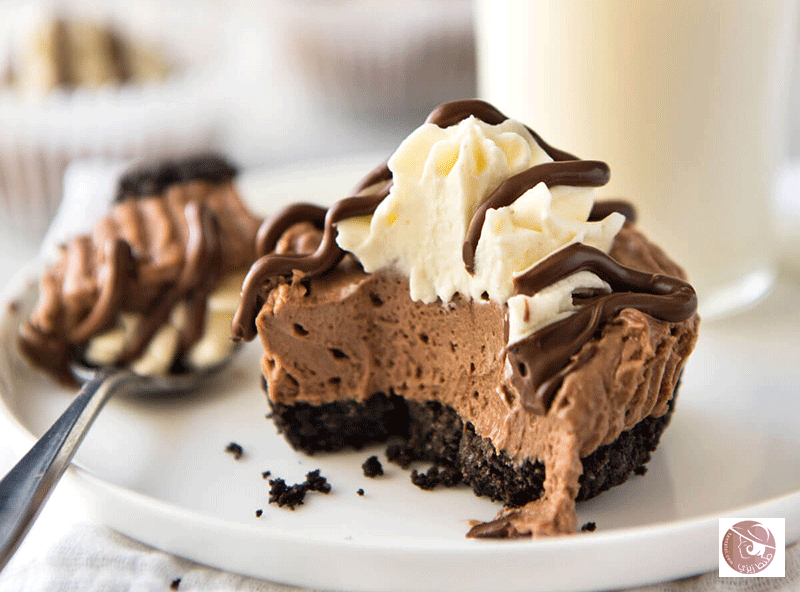 2. اخلطي بسكويت الأرويو المفتت بالزبدة ووزعي البسكويت في الصينية واضغطي جيدا على كل حبة بحيث يكون البسكويت مرصوص.
