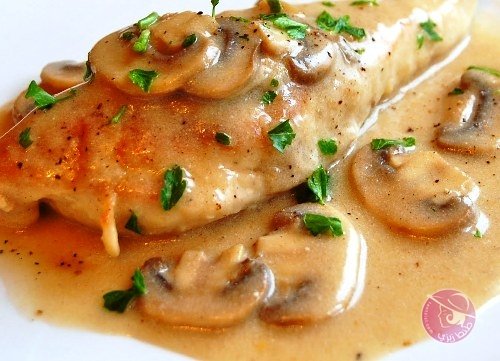 صدور الدجاج بصوص كريمة المشروم