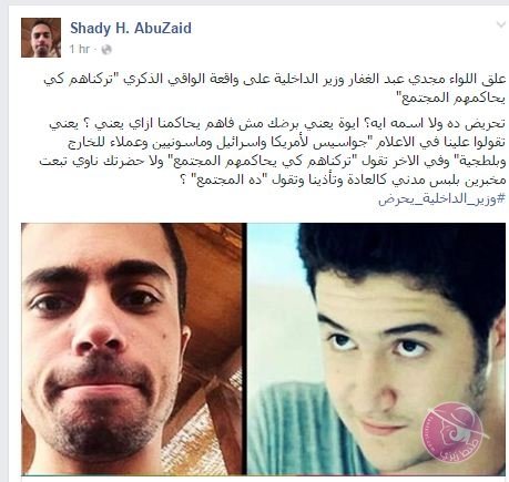 أبو زيد ذكر، عبر صفحته الرسمية بموقع التواصل الاجتماعي «فيسبوك»: «تحريض ده ولا اسمه إيه؟ أيوه يعني برضك مش فاهم يحاكمنا إزاي يعني؟».