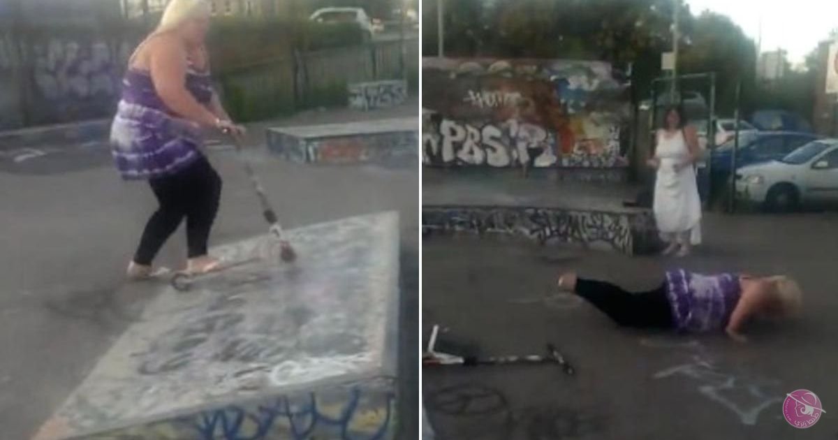 نشر مقطع فيديو على مواقع التواصل الاجتماعي، يظهر امرأة وهي تحاول أن تثير إعجاب أطفالها عبر تأدية حركة بالسكوتر في إحدى الحدائق العامة.