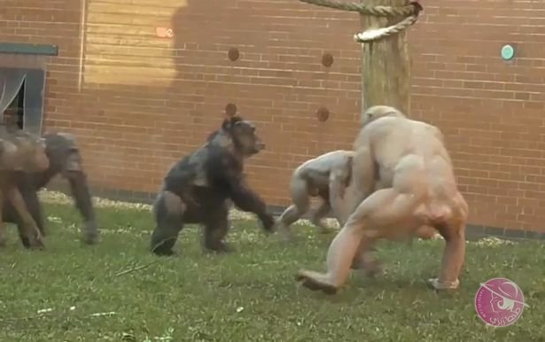 نشرت صحيفة ميرور البريطانية فيديو و صوراً لإثنين من الشامبنزي مصابين بمرض مناعي يسبب تساقط الشعر يتعاركان بشكل ضارِ داخل حديقة حيوان بالمملكة المتحدة مما حث باقي القرود للإنضمام إليهما فيتحول العراك إلى معركة كبيرة داخل المنطقة المخصصة لهم بالحديقة. التقط المقطع ثنائي كانا بالحديقة لفت نظرهم الواقعة من أولها لعنفها الواضح.