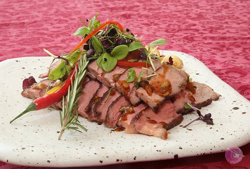 3. نضع العسل لإضفاء النكهة والرائحة الطيبة، ثم نشوي اللحم من جديد لمدة خمس دقائق.