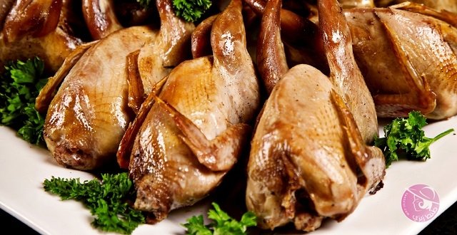 Fried quail with parsley on plate