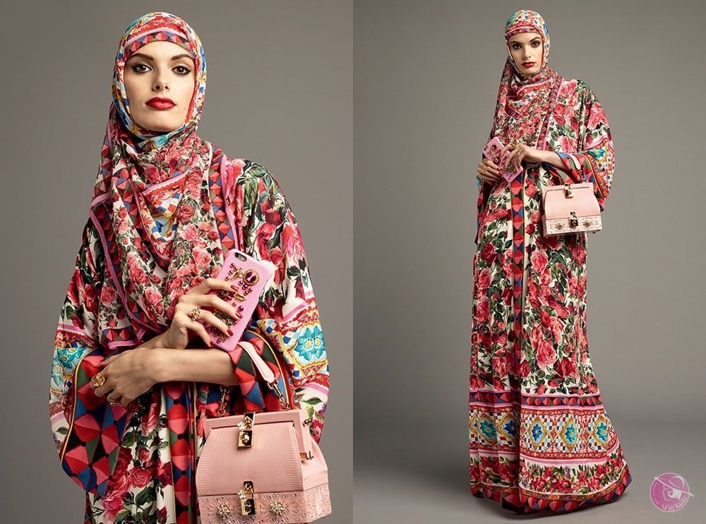 تشكل العباءة الملونة جزء أساسي في المجموعة، والتي حظيت بإعجاب كثير من النساء مؤخراً، ويعد اللون الوردي هو الأبرز في العباءات الملونة لدى دولتشي آند غابانا.