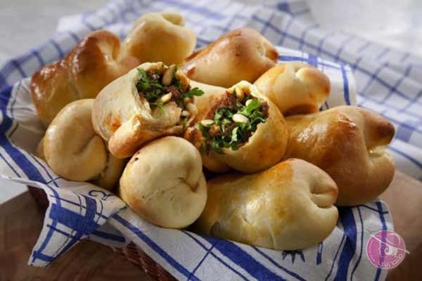 4. باستعمال النشابة، مدّي كل قطعة من العجينة إلى دائرة صغيرة، ضعي في كل دائرة مقدار نصف ملعقة صغيرة من صلصة الطماطم، مقدار 1 ملعقة كبيرة من اللحم المطهي، قطعة من الجبن ، قليل من البقدونس وبضع حبات من الصنوبر. إثني طرفي الدائرة على الحشو، لفّي مرتين لتحصلي على لفافة متماسكة. ضعي اللفافات في الصواني جهة القفل إلى الأسفل مع ترك مسافة 1 بوصة بينها.