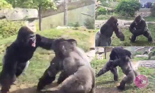 حصلت هذه المواجهة في حديقة حيوان بولاية نبراسكا الأمريكية، عندما دخل اثنان من ذكور الغوريلا في مشاجرة عنيفة أمام أعين زوار الحديقة، ووجه كل منهما للآخر لكمات وركلات موجعة باستخدام الأيدي والأرجل، قبل أن يهرب أحدهما ويتوارى عن الأنظار، في هذا الفيديو، الذي نشرته صحيفة “ديلي ميل” البريطانية.