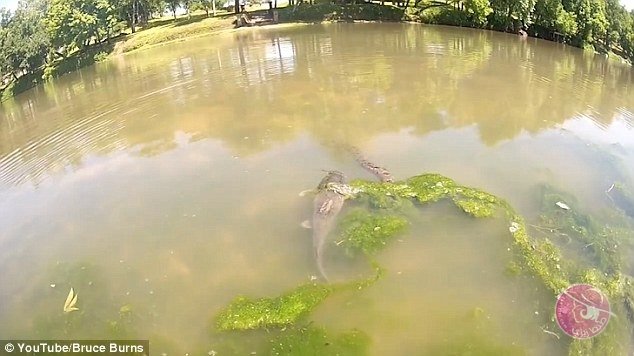 ثعبان مياه يبتلع سمكة تفوق حجمه بثلاثة أضعاف