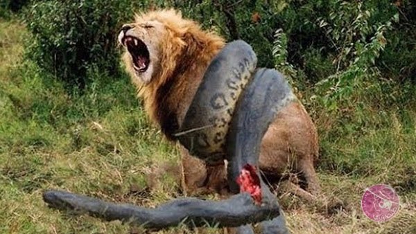 تظهر الأناكوندا في الصورة يصل طولها إلى 40 قدما، وتلتف حول جسد الأسد بقوة، ولكن حقيقة الأمر، أن الأسود تعيش بجنوب أفريقيا وآسيا، أما الأناكوندا فتعيش بجنوب أمريكا، ما يدل على أن الصورة ليست حقيقية.