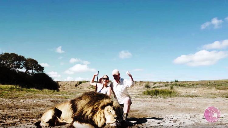وبدت السيدة، وهي تحمل بندقية صيد، تتفاخر أمام الكاميرا مع رجل كان برفقتها إلى جانب الأسد القتيل، قبل أن تأخذ الأمور منحى غير متوقع، ويهاجمهما أسد آخر ظهر فجأة من الخلف.