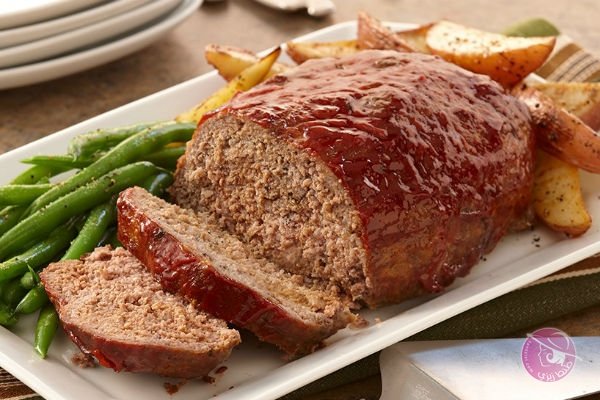 اتركي القالب ليبرد ثم اقلبيه في طبق التقديم وادهنيه بالكاتشب او صوص الباربكيو وقدميه دافئ