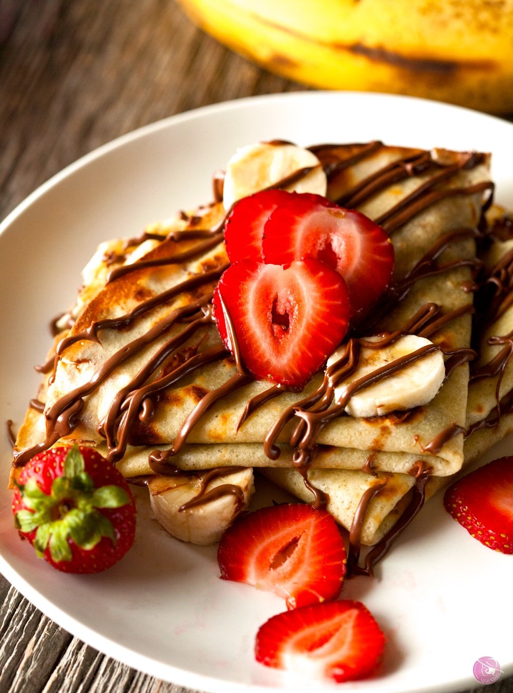 - زيني الكريب بصوص الشوكولاتة من الخارج والسكر البودر.