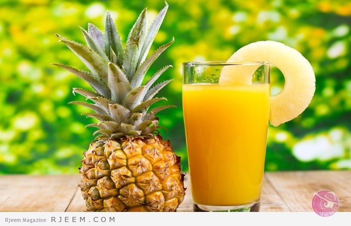 – الأناناس: عصير الأناناس يحتوي على مادة البروميلين التي تساعد على تحطيم البروتين، ويساعد أيضاً على سهولة الهضم والتخلّص من الانتفاخ، وعدم ظهور الكرش.